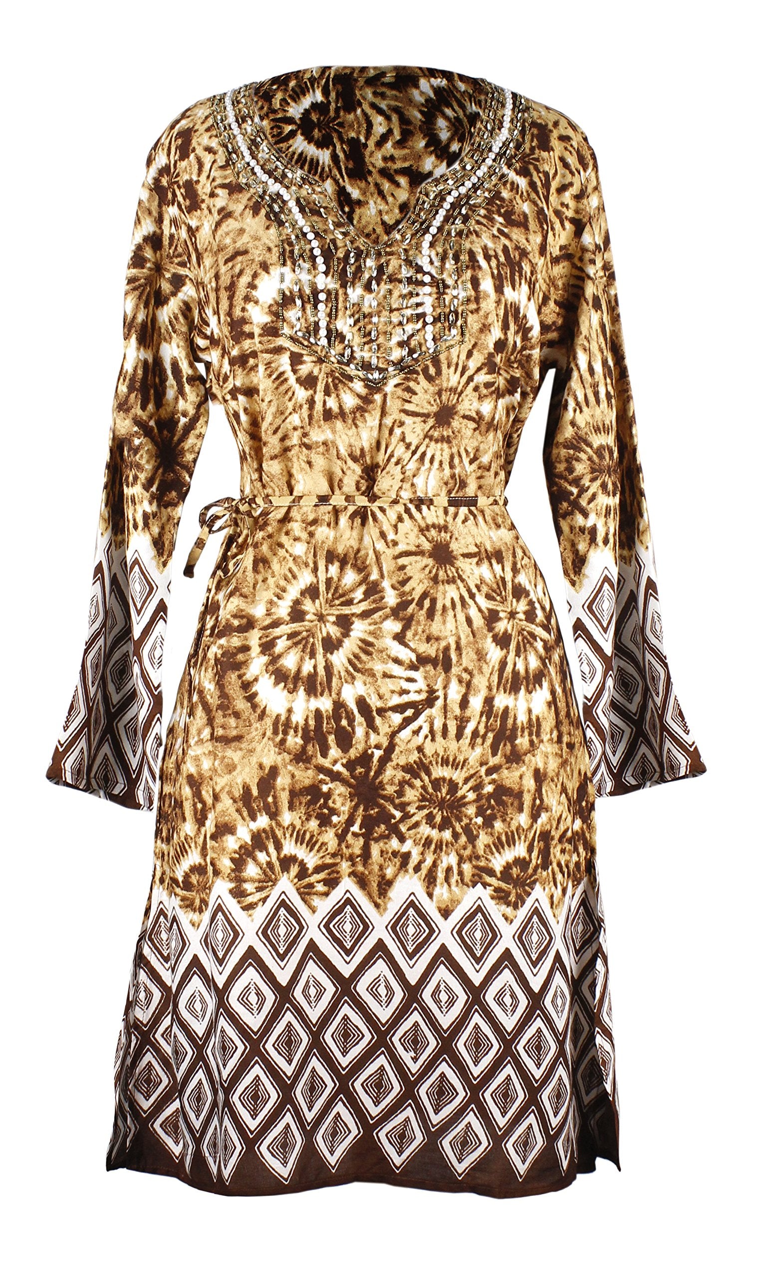 Wholesale Bulk Lot: Women’s V Neck Tunic Long Sleeve Geo Brown Dress Size L